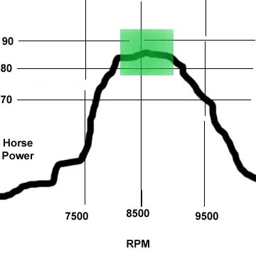 | As I showed in this graphic above, RPM is extremely important to horsepower output on a snowmobile engine. If this guy were running at 9500, he would only be making 70hp. By tuning the primary clutch to 8600, he would pick up a good 15hp. That will dust your buddy with the exact same sled every time. Bolt on horsepower is for wannabes if you don’t do this simple step. After you buy your pipes/carbs/heads, whatever..put it on a dyno, re-jet, and find out where your engine makes the most power. Have the dealer set the weight/spring combination to this rpm. The dyno, jetting, and clutch work&parts should be about $300. |
