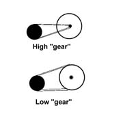 | The secondary clutch is in charge of the gearing. The ramp and spring arrangement in the secondary balance against the pull of the belt, or the load. The the balance point, hopefully, is the ideal gear ratio for the needs of the moment. |