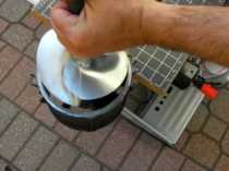 5) Apply a thin layer of marine grease to the inside edge of the water pump housing by hand. Place the new keyway into the slot on the top of the gear box and set the metal plate on the gear box with the rounded side facing up.