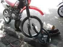 The ability to replace a dirt bike’s inner tube is an essential skill for the serious dirt bike rider. Inner tubes can pop or blow out while you are on the trail, leaving you stranded. You should always be prepared, carrying a few hand tools and an extra tube in a small tool pack somewhere on your bike. If one of the tubes pops, you’ll be prepared and be able to change the tube in a few minutes