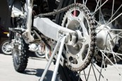 3) Place a dirt bike stand underneath the motor to lift the rear wheel off the ground. Push the rear wheel forward to loosen the drive train.