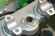Once the new bottom bearing is fitted install the new outer races to the headstem tube and then insert the bottom triple clamp and shaft up into the headstem. Install the top bearing over the shaft and replace the top triple clamp. Lightly install the top nut, put the fork legs back in, and tighten only the bottom clamps. With the bottom clamps tight, snug up the top nut until the steering moves freely. Finally, tighten up the top clamps.