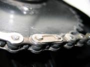 3) Locate and remove the old master link from the chain, using a chain breaker tool. Additionally, you may grind off the side plate pins on thicker chains (No. 520 or larger) to help prevent damage to the chain breaker tool.