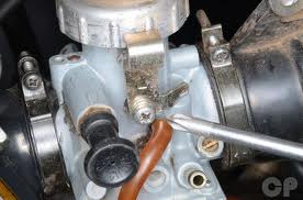 Internal combustion engines require two things to generate power: air and fuel, in the form of liquid gasoline. Both are mixed inside of the ATV’s carburetor, where small nozzles, called jets, spray a measured amount of gasoline into the air that is being pulled through the carburetor’s inlet and into the engine. The fuel suspended in the mixture is atomized, or reduced into tiny droplets, that help the ignition process within the engine. While the fuel itself is flammable, the presence of oxygen in the air enhances the fuel’s ability to ignite and combust. Most carburetors are preset to allow enough fuel into the incoming air stream to provide the most efficient mixture possible.