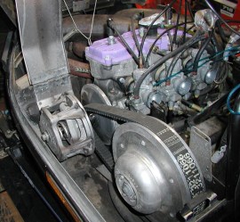 2) Push the belt to one side of the clutch and insert a feeler gauge between the belt and the clutch surface. The reading should be between .010 and .020. Replace the belt with a new one and remeasure if the gap exceeds .020. Contact your dealer for spacers and tools to bring the clearance in line if it is still over clearance limits. Each manufacturer uses different methods and tools in performing these adjustments.