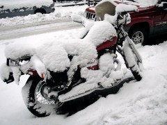 5) Make sure that the tires have the proper inflation in them to hold the motorcycle’s weight. Low tires will get flat spots on their sides from the weight of the motorcycle, and may crack in the cold. Use a good tire cleaner to treat them with just before you park the motorcycle for the season.