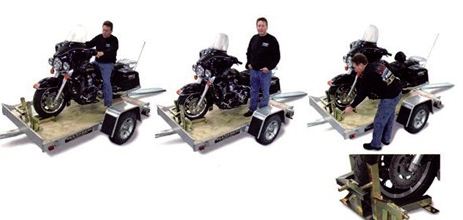 Use 2 pair of cam buckle tie downs or ratchet straps. This can help secure the bikes when you haul motorcycles.