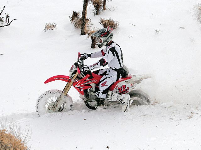 While dirt bikes are more commonly ridden in warm weather over dirt, sand or mud, many adventurous enthusiasts enjoy rides during the winter over snow and ice. Special care must be taken, however, to modify the bike and outfit the rider beforehand. Under the right conditions and with the right preparation, riders can safely enjoy using their dirt bikes during cold weather.