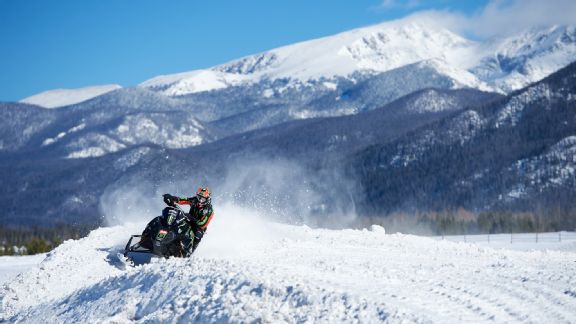 On a bluebird morning in northern Colorado, Hibbert’s wife and publicist, Mandi Johnson Hibbert, greets a visitor with a smile. It is 9 a.m. and Hibbert is driving a snowcat on a private 75-acre pasture, shaping a snocross track to mimic the X Games course in Aspen. He does this every day for two weeks leading up to the biggest event in snowmobile racing. The site is a secret. It is made clear that no one is to reference the town or post photos to social media that might be GPS-stamped. Certain testing contraptions may not be photographed. Mechanics and engineers exchange wary glances. It feels as if you are being let into the Batcave.