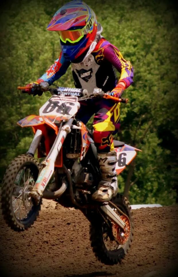 “Couldn’t be more proud of this kid. Just 4 weeks ago he fractured his collar bone preparing for the Mid East regional at Red Bud. He was heart broken thinking his dream of Lorettas this year was all but gone. He knew if he did everything the Dr said he would have this chance at Sunset Ridge to make this last chance in the North Central. He drank his milk, ate his vitamins, ate healthy. Dr released him to ride just days before the regional. With 3 weeks off the bike and no practice he knew he had to give it everything he had. These kids have been riding the whole time. Practicing. Moto schools. Training. But he had something more than them. Heart! Man does this kid have heart..”