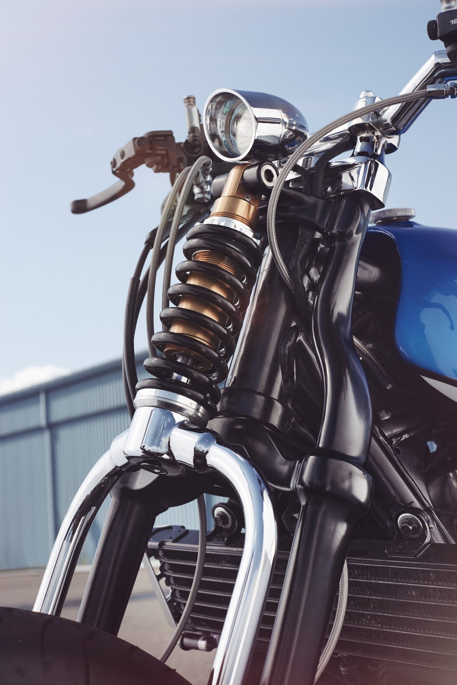 The XJR 1300 you see here is the result of a collaboration between NYC based Japanese custom motorcycle builder Keinosuke “Keino” Sasaki and Yamaha as a part of their Yard Built project. Keino set about disassembling the bike before beginning the rebuild process, the first order of business was an entirely new front suspension set up with a custom, adjustable mono-springer, this was paired with a pair of adjustable rear springs to give the rider a high level of control over handling characteristics.