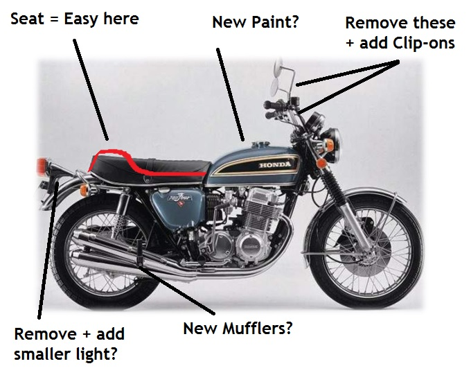 There is a reason why people tend to like Honda CB’s for building a cafe racer. The are reliable, cheap, there are many parts for sale and they do already have a lot of “cafe racerish” parts on them