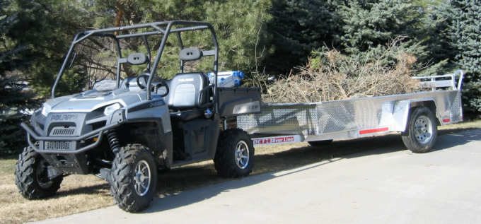 When towing massive amounts of weight, think seriously about braking ability. Most heavy haulers have great brakes, but prepare in spite of this. Putting a massive load of gear or supplies behind the UTV will instantly create issues with slowing the machine. If the trailer has no brakes itself, then you are counting on your UTV to stop the entire train. Make slow turns and limit speed (no matter how fast you think you need the job done). If you are hauling a loaded trailer across your property and deer suddenly jumps across the path, you will want to be at a controllable speed to manage the rig. Make a run-out plan for steep downhill and off-camber terrain in-case the unit does not want to stop on command.