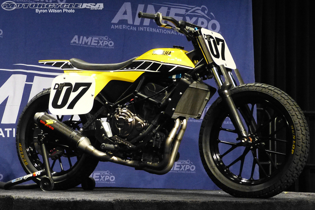 Yamaha provided an interesting vision of its possible dirt trackin’ future at the AIMExpo this year with its slick, FZ-07-based Flat Track concept, the DT-07. The “Dirt Tracker Concept,” as its dubbed in Yamaha press material, was built through a collaboration between Yamaha Motor Corporation, U.S.A. and Jeff Palhegyi Design (JPD).
