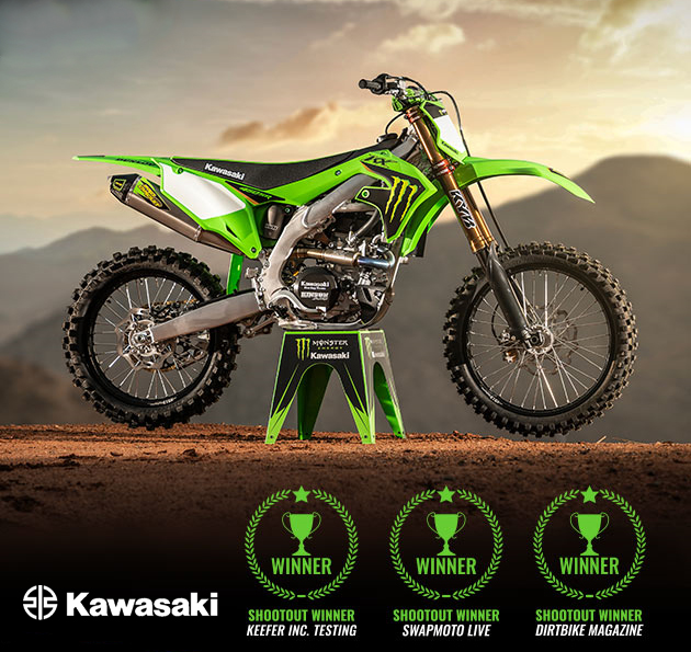 Kawasaki takes home top honors from three different publications for the 450cc class for their limited edition 2022 KX 450SR motocross motorcycle.