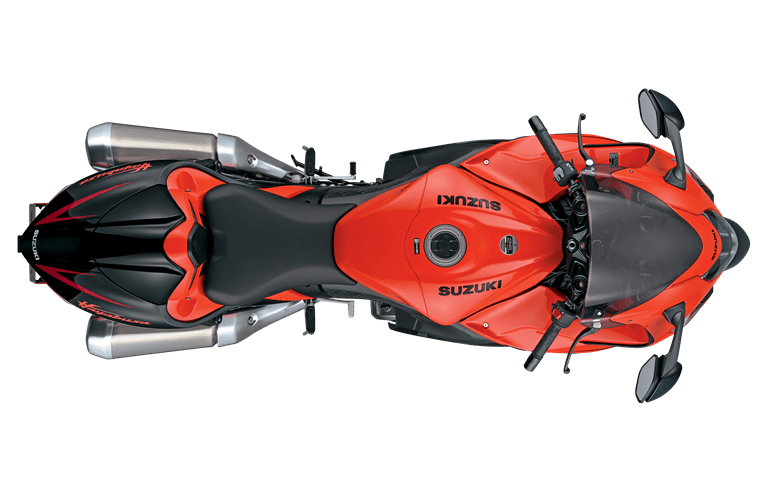 The 25th Anniversary Edition Hayabusa arrives in a striking and special Glass Blaze Orange & Glass Sparkle Black color combination, reminiscent of one of the most popular Gen II model’s color palettes set off with special red accents. This stunning appearance is enhanced with a range of features unique to this special 25th Anniversary Edition.